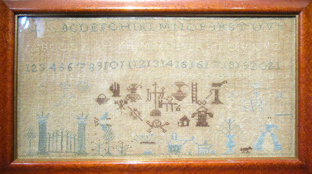 Aged 11 years, circa 1830 What first attracted me to this sampler were the “broom ladies” who appear on another one of my reproduction samplers made by Sarah Willson in 1837. At first glance, it appears as if they might be playing bagpipes, but they are indeed holding brooms and offering them for sale. It’s…
