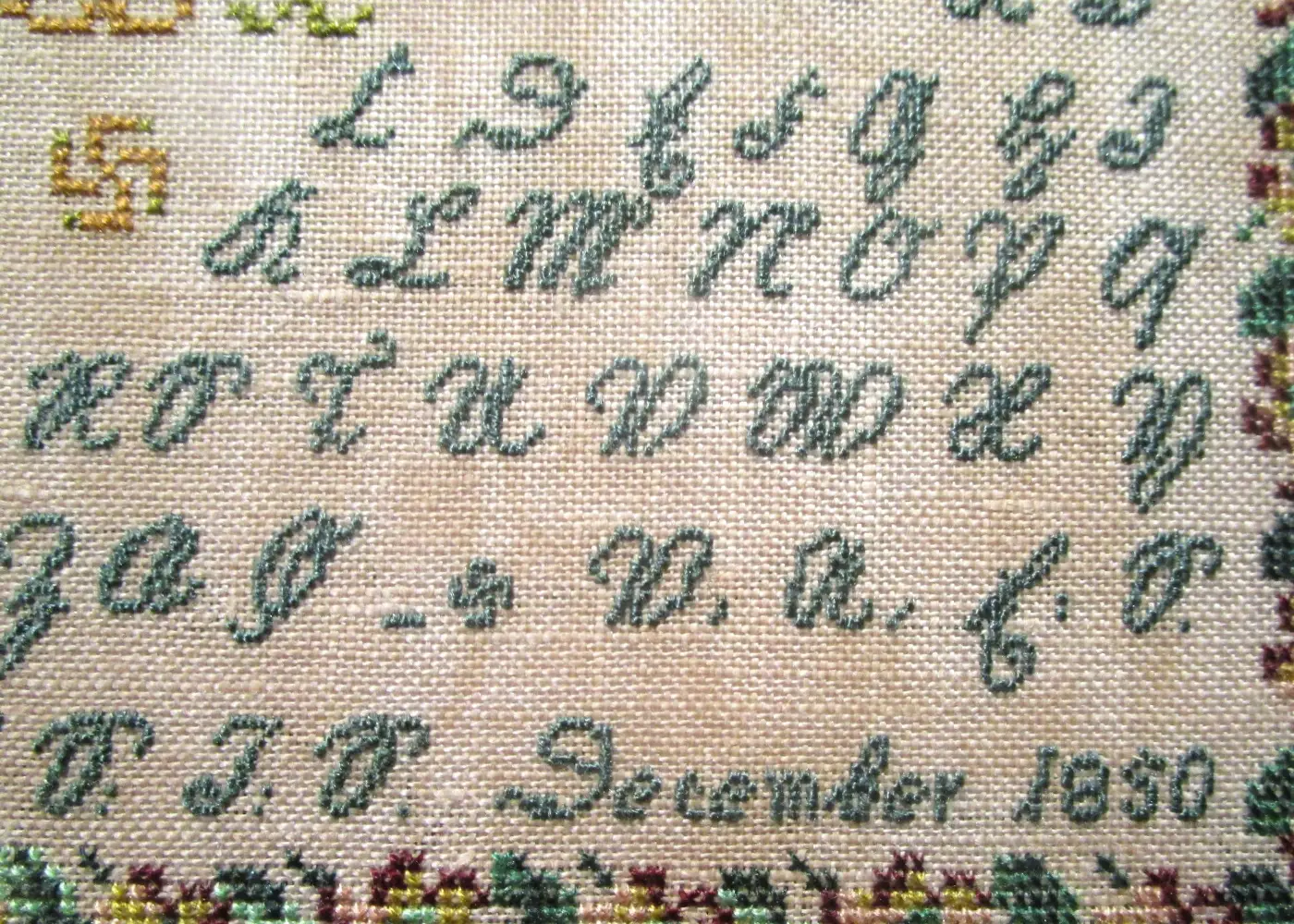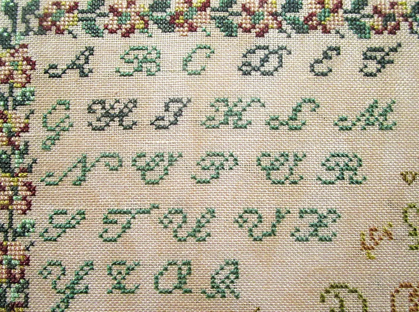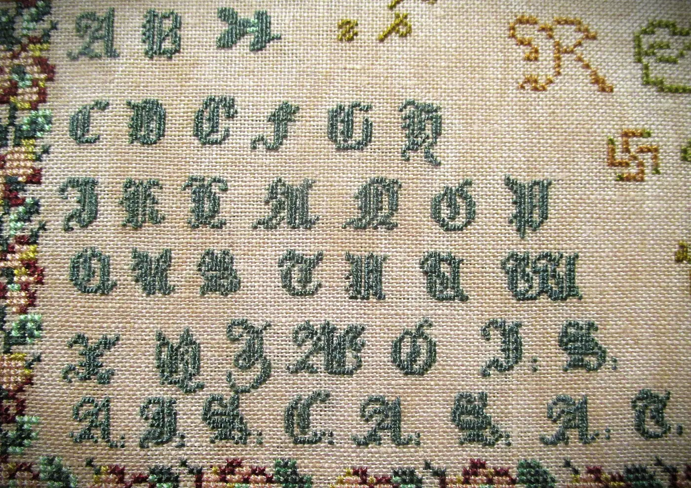 language handwriting based on late medieval cursive. It is also referred to as German “Gothic” writing or German paleography, so some of the letter forms stitched on this sampler may be unfamiliar to many of us.